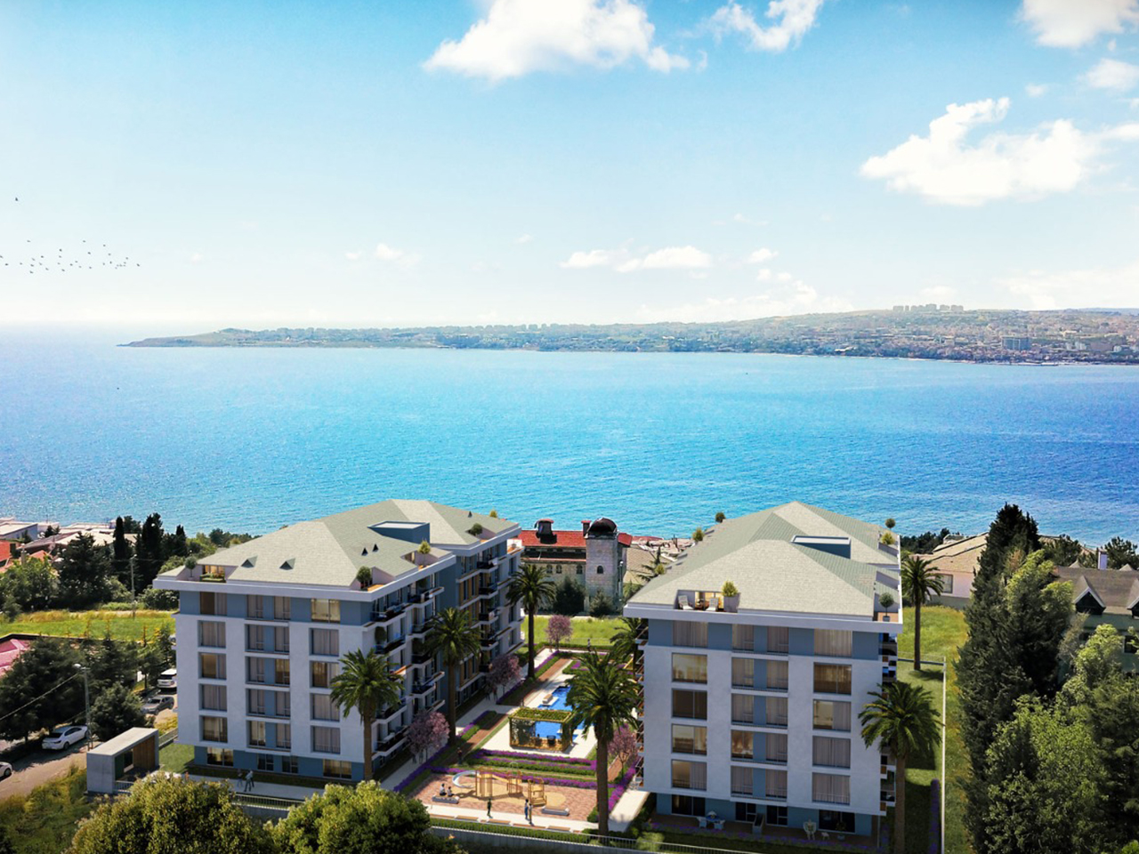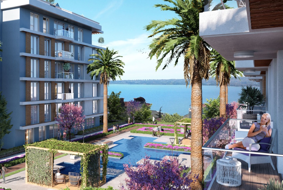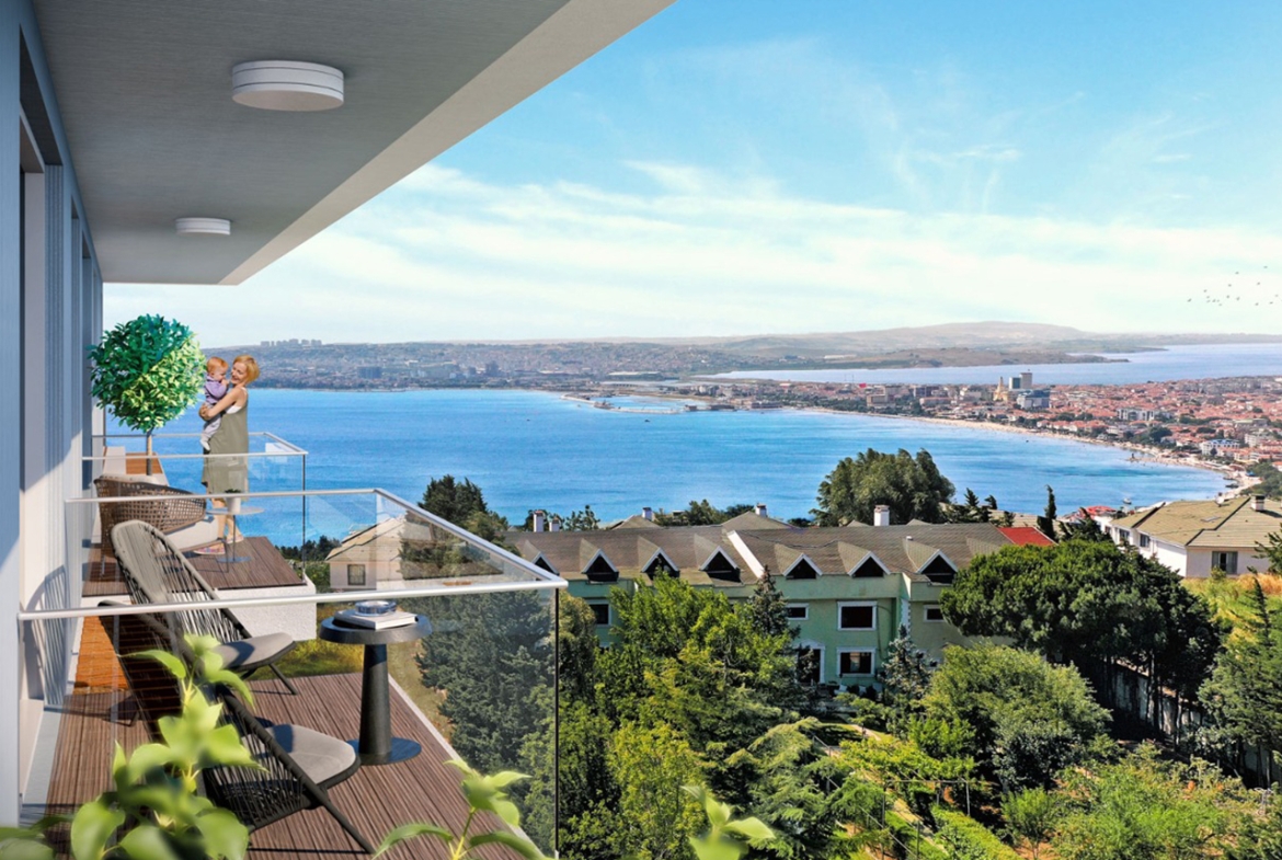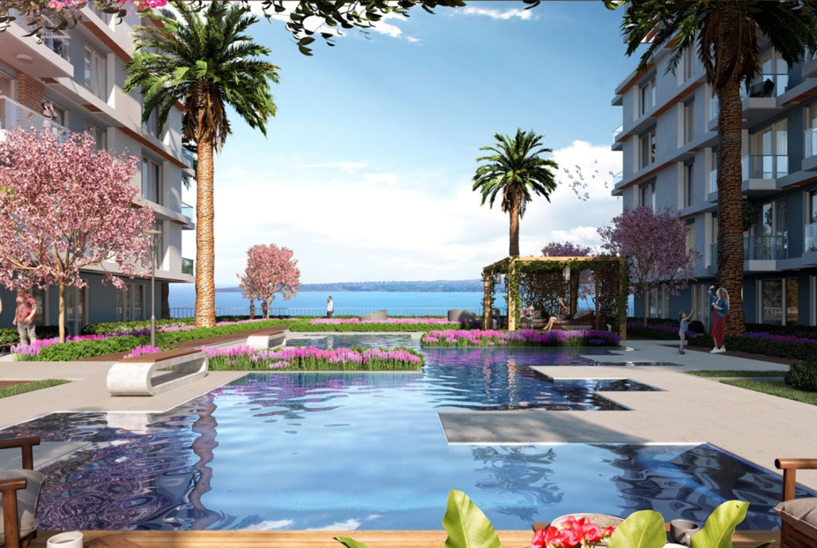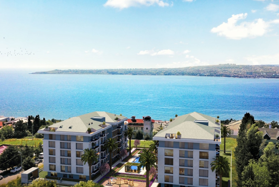 The project is located in Buyukcekmece, 1.3 km from the coast, as it features direct views of the sea, providing you with comfort and peace of mind through a charming view. The project has two buildings on an area of 4,000 square meters, 80% of which is landscape , and there are 120 apartments of different styles.