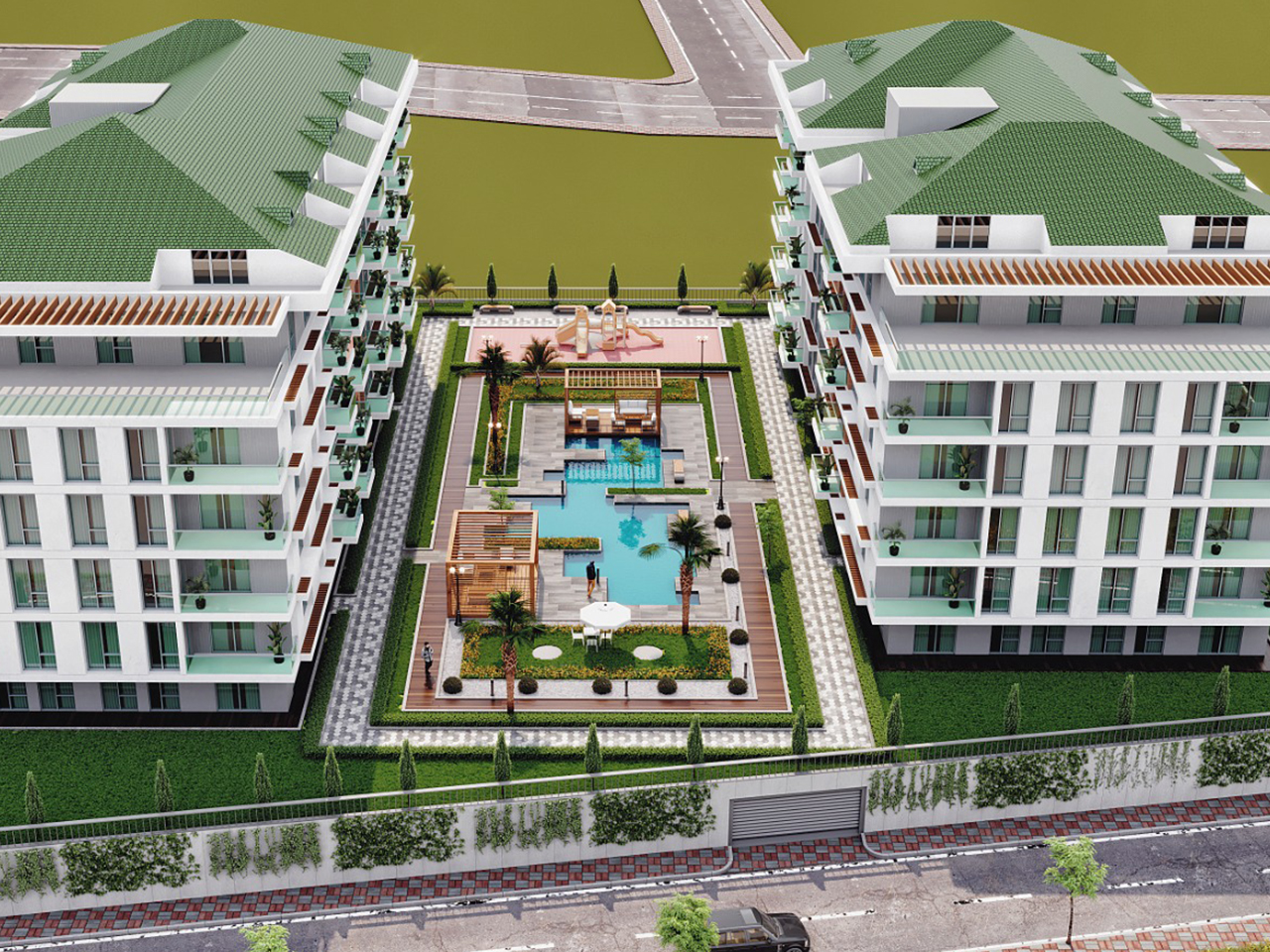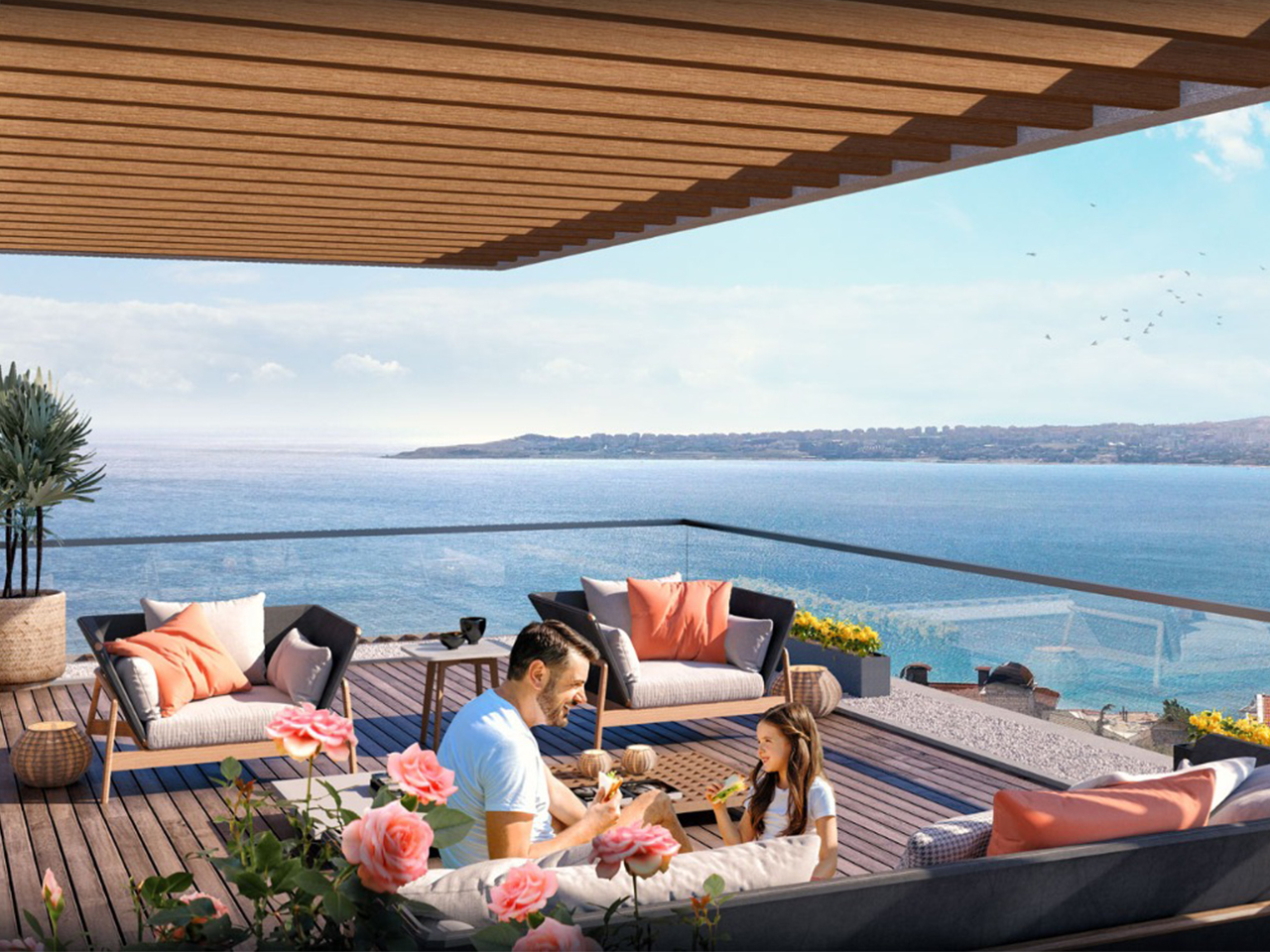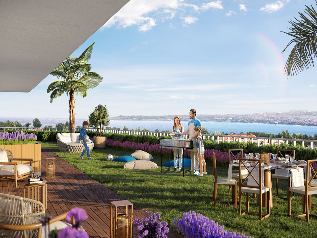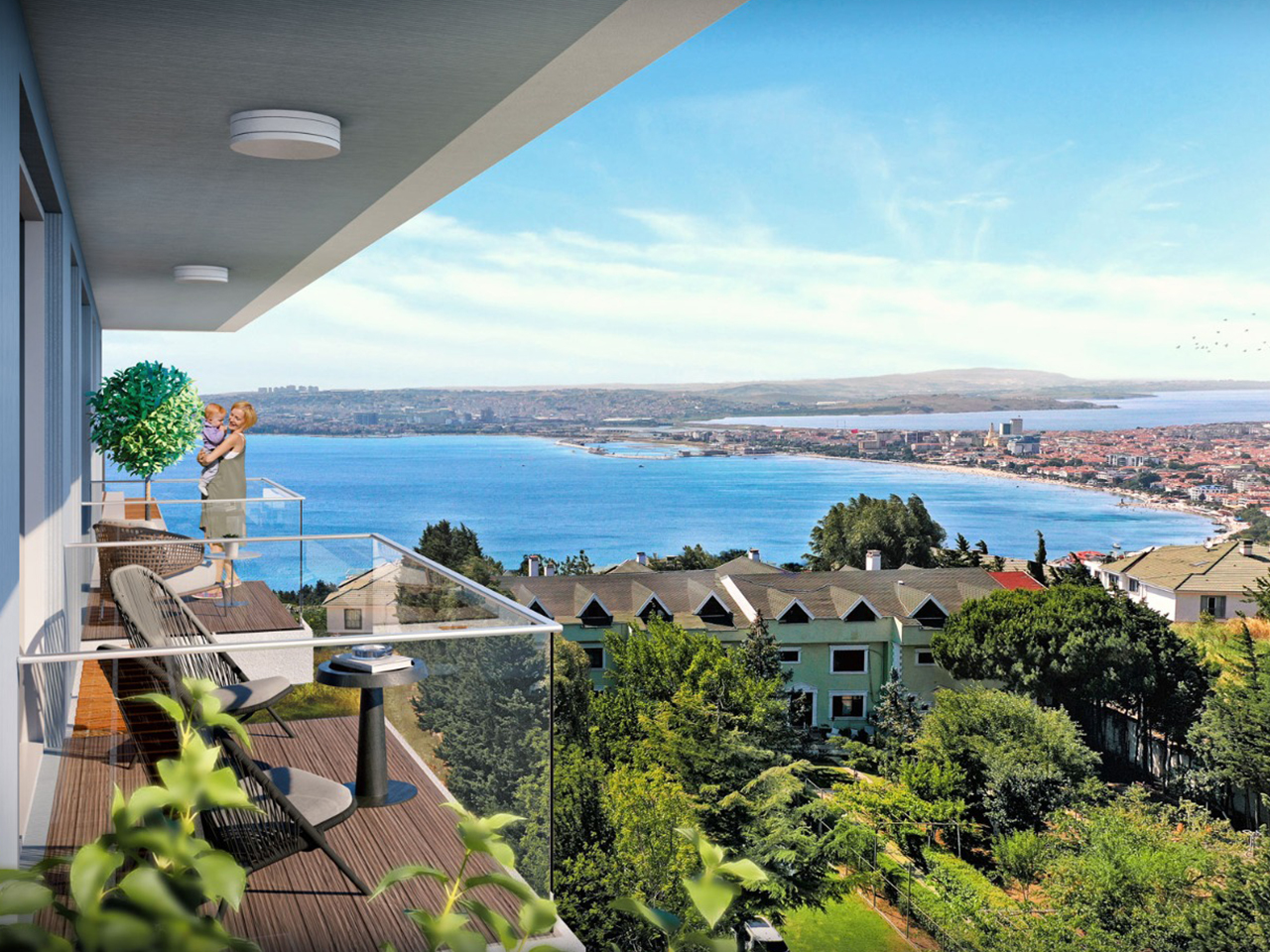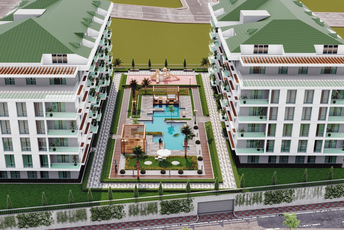 The project is located in Buyukcekmece, 1.3 km from the coast, as it features direct views of the sea, providing you with comfort and peace of mind through a charming view. The project has two buildings on an area of 4,000 square meters, 80% of which is landscape , and there are 120 apartments of different styles.