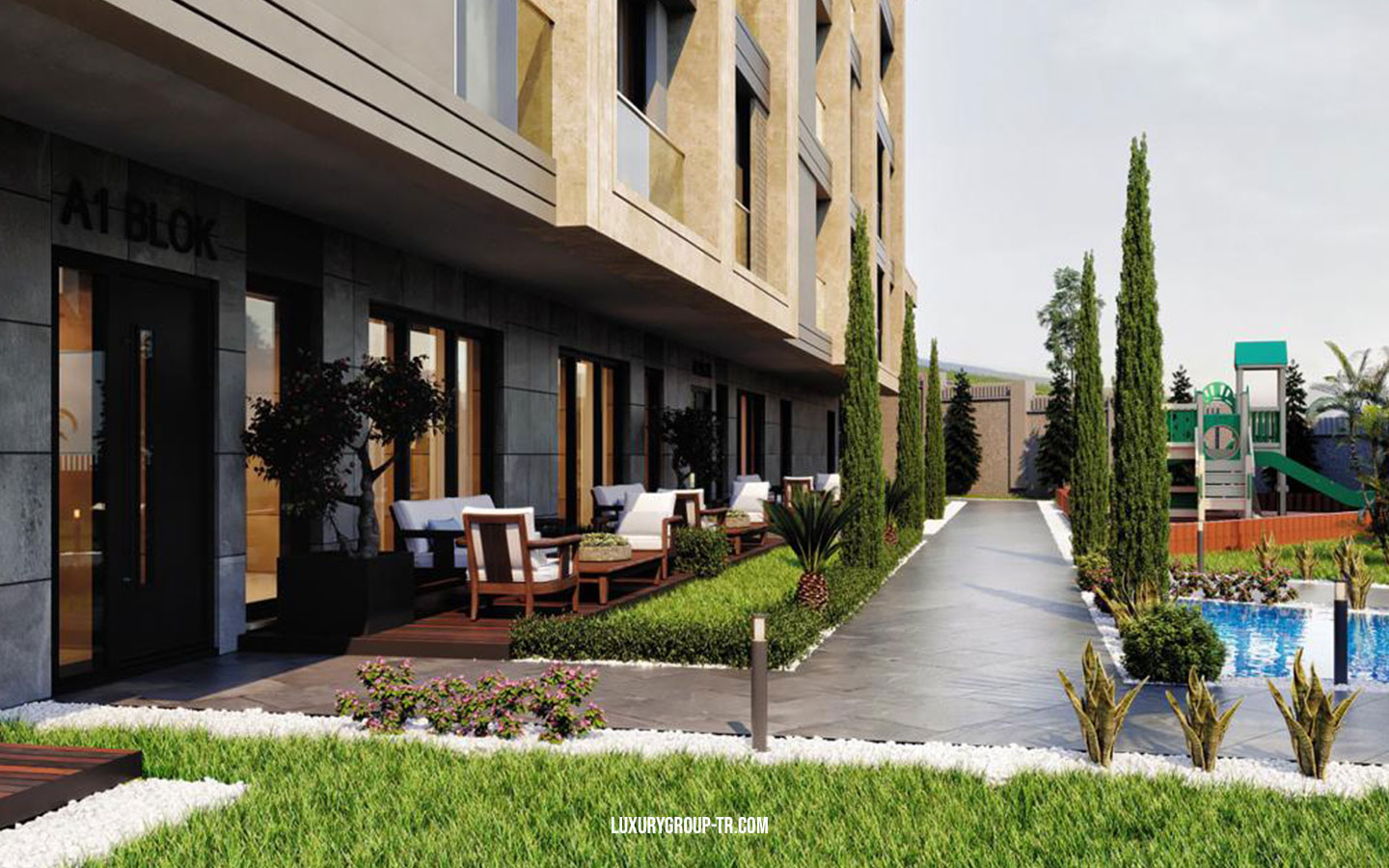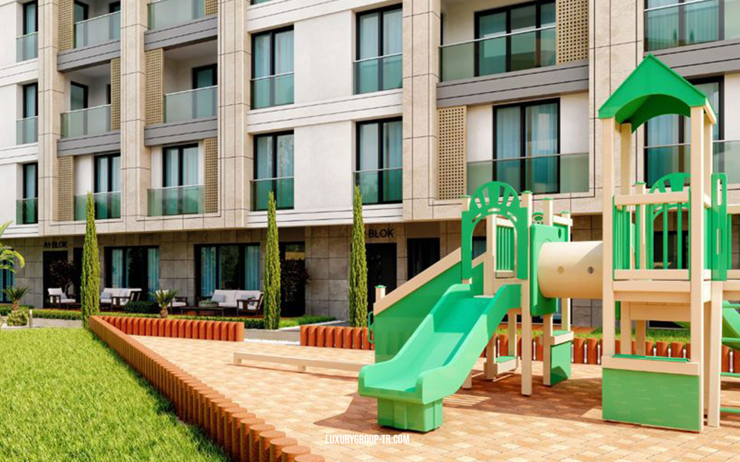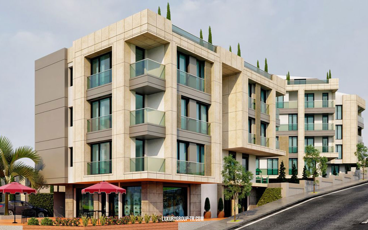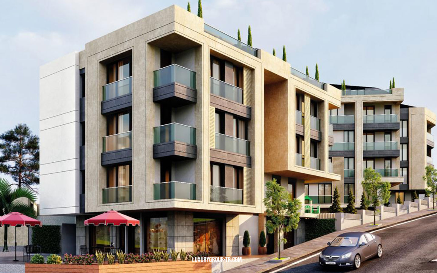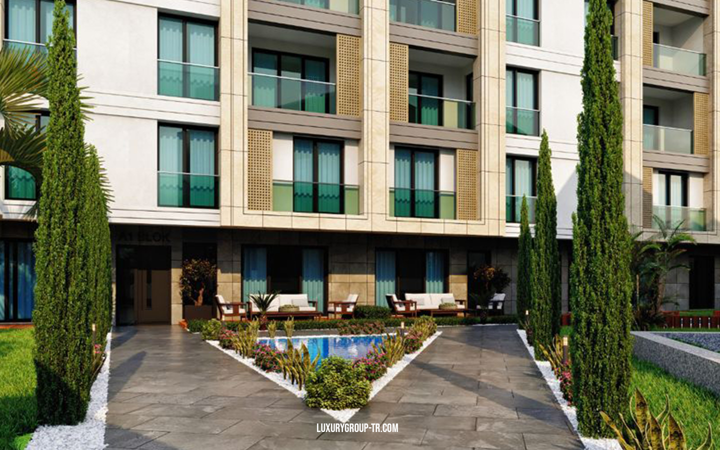 Casamarin project The project is located Beylikdüzü, only 1 km from the Marmara sea coastline. 10 min from the metrobüs line, 3 min from the coastline and 5 min to West Istanbul Marina. The area of the project is 5000 sqm construction is 2000 sqm. It has 2 Blocks, A block is separated to 3 blocks with different entries and has 5 floors,B block has 4 floors, the project has different apartment types starting from 1+1 to 5+1 duplex with beautiful sea view in each floor is 2 apartments.